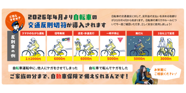 実は2026年4月から自転車の交通違反に対して反則金の支払いを求める取り締まりが始まります。